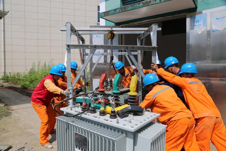 現(xiàn)場(chǎng),施工人員8個(gè)人一組,把老舊的電纜拆除,將新的線徑更粗的電纜穿過(guò)地下孔洞,繞到配電室一側(cè),再重新搭接線路。停電、驗(yàn)電、吊離變壓器,安裝新變壓器……供電員工沒(méi)有片刻停頓,每個(gè)步驟有條不紊,迅速完成增容任務(wù)。