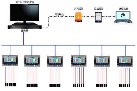 變壓器繞組及電纜接頭溫度監(jiān)測報警系統(tǒng)采用漢光專用熒光光纖測溫探頭進(jìn)行敷設(shè)。每個變壓器采用一套熒光光纖測溫主機(jī),HKFO-600YG系統(tǒng)接入后臺通過服務(wù)器進(jìn)行管理。當(dāng)發(fā)生溫度異常警報時可聯(lián)動聲光、短信報警功能,報警信息將發(fā)送到運維用戶手機(jī)上,也可通過電腦主機(jī)遠(yuǎn)程監(jiān)控查看現(xiàn)場狀態(tài)。